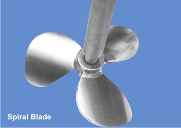 These agitators have blades with a twisted mechanism, just like the threads of a screw. The curves result in a vigorous motion of the fluids to be agitated. Helical agitators are most useful for mixing viscous liquids.