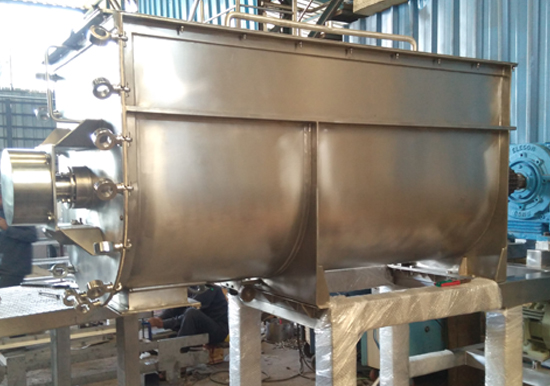 Blender consists of transmission parts, Single ribbon agitators and U-shape cylinder. In the direction of rotation, the ribbon circulates the material inside the trough. Ribbon wind with different angle direction carries the materials flowing in different directions. Through continuous convective circulation, the materials are sheared and mixed thoroughly and quickly.
