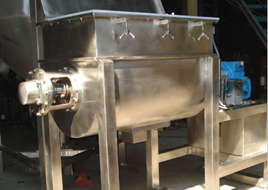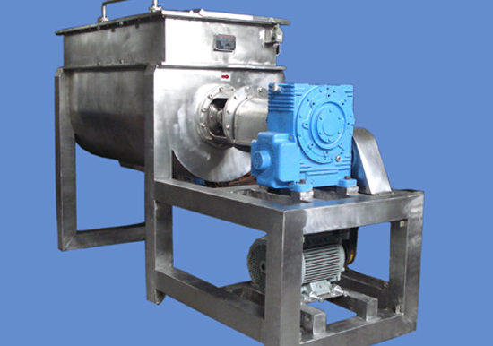 Blender consists of transmission parts, double ribbon agitators and U-shape cylinder. In the direction of rotation, the outer ribbon pushes materials from both ends to the middle, while the inner ribbon pushes materials from the middle to both ends. Ribbon wind with different angle direction carries the materials flowing in different directions. Through continuous convective circulation, the materials are sheared and mixed thoroughly and quickly.