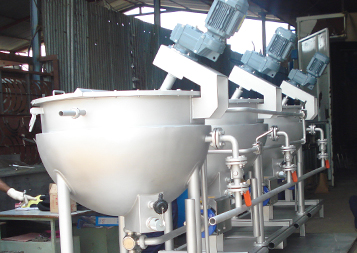 Our kettles have a unique design with a true hemispherical bottom, ideal for mixing and, with the help of an optional spiral jacket built in to the hemisphere, providing high efficiency heating and cooling. Capacities range from 50 Liters to 500 Liters. We stop at 500 Liters because the complexity of the half sphere bottom limits the functionality on anything above that.