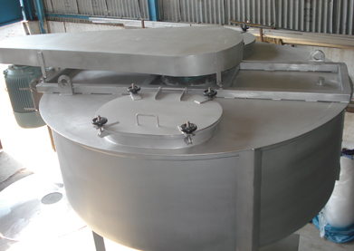 A vertical screw moves the materials upward along the vessel wall to the top, where the materials then drop by gravity into the center. During this continuous operation, material particles and heat are exchanged quickly which leads to a homogeneous product. Besides, the material particles are mixed with minimal mechanical and thermal stress, which makes this type of mixer a good solution for fragile and heat sensitive product